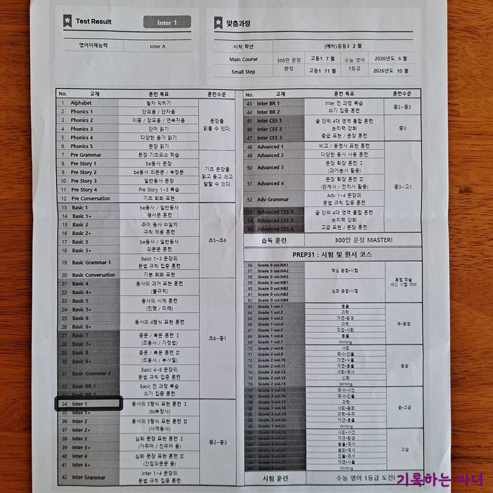 이 학원의 스케줄을 보면 중2나 중3에 수능과정을 시작해서 고등학교 1학년에 수능 1등급에 도달한다는 목표를 두었다. 2~3년 만에 수능 1등급의 영어실력이 될지는 의문이지만 어쨌든 스케줄은 그렇다.